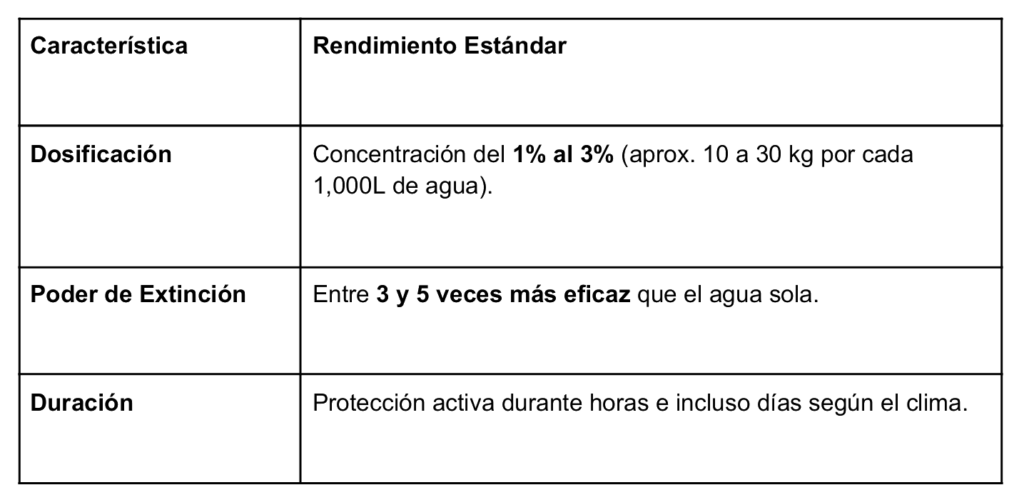 ● Escudo Térmico: Forma una película que aísla el combustible (madera, plantas) del